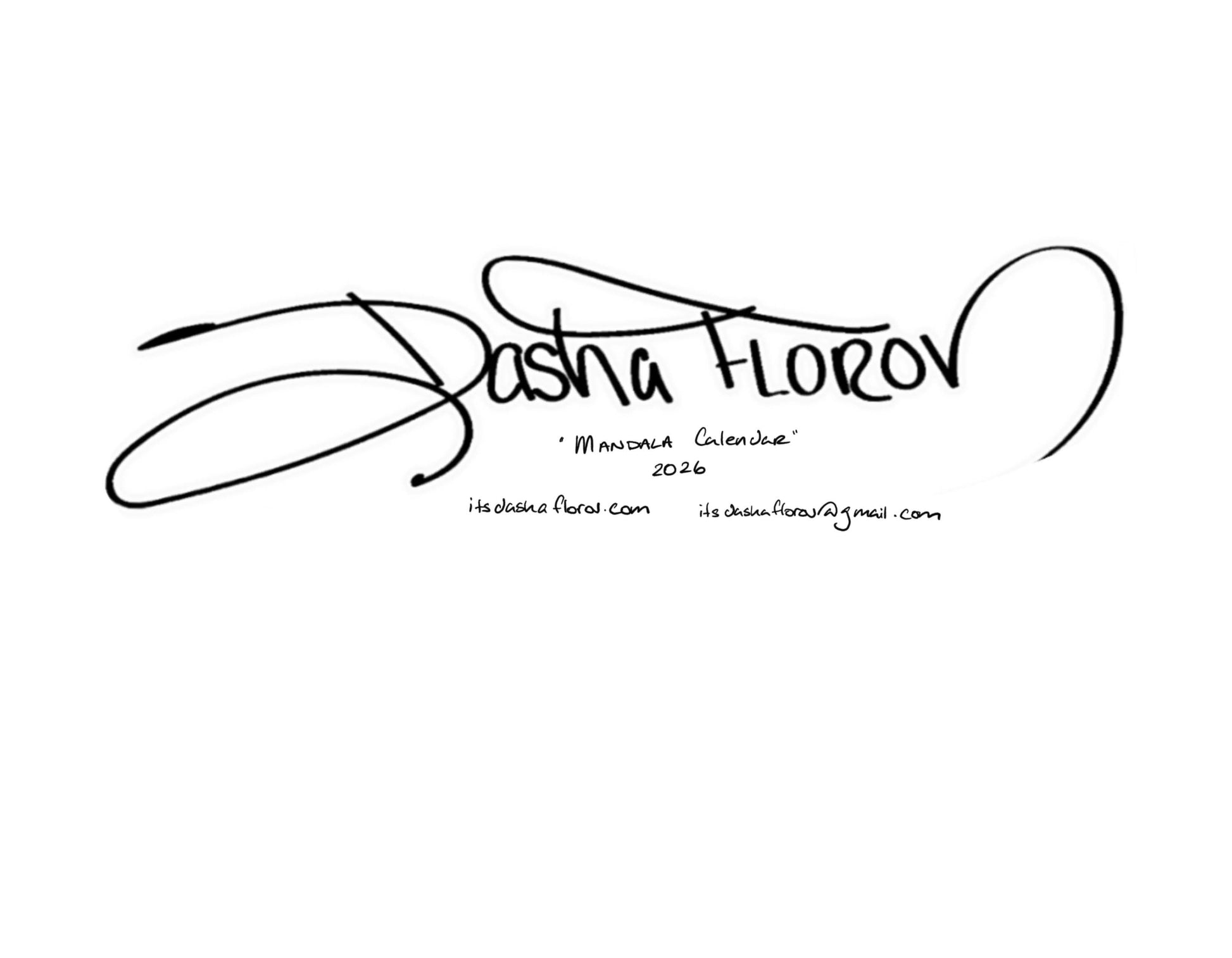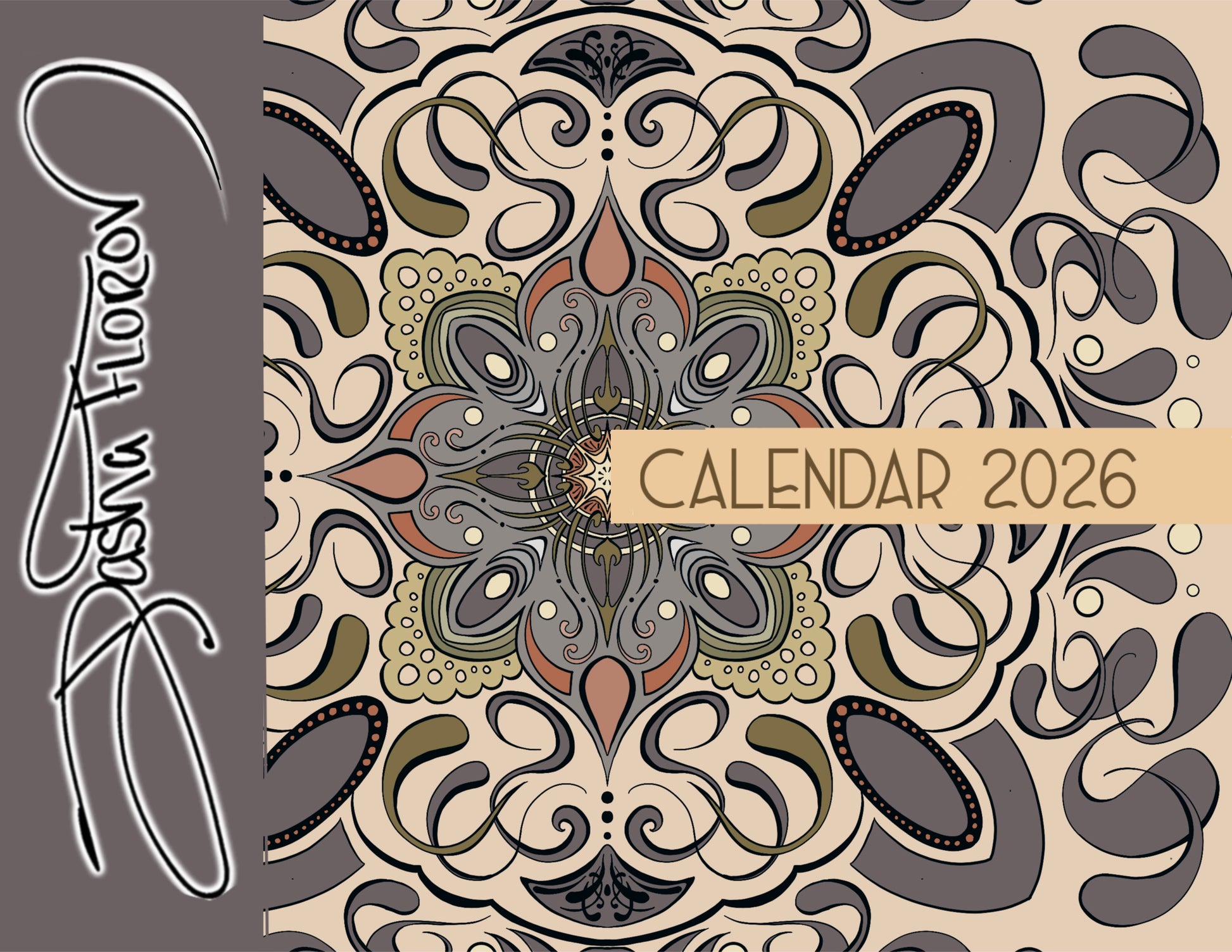 2026 Calendar featuring Dasha Florov's digital mandala designs.
